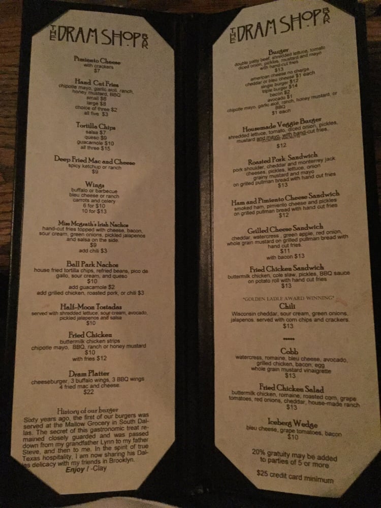 Welcome to The Dram Shop Bar, a vibrant Tex-Mex eatery nestled in Park Slope, Brooklyn. This local gem is renowned for its delicious American classics with a spicy twist. The menu features a variety of enticing options, including the indulgent Cheese Quesadilla filled with White Cheddar and accompanied by fresh Pico de Gallo and Sour Cream. For heartier fare, the Chicken Quesadilla and the zesty Mushroom & Rajas Quesadilla are sure to delight. Don’t miss their famous Wings, available with an array of sauce options like Buffalo and Mango Habanero. The cozy atmosphere, complete with pool tables and friendly staff, makes it perfect for unwinding with friends. Patrons rave about the seasonal frozen margaritas and the inviting happy hour specials. The Dram Shop Bar is truly a go-to spot where flavorful dishes and a lively ambiance come together harmoniously.